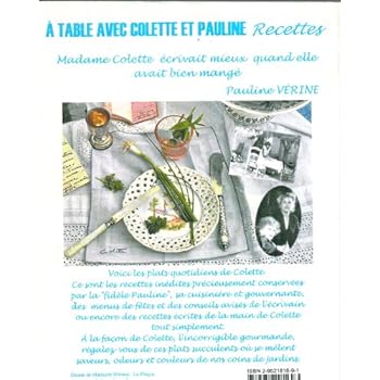 A table avec Colette et Pauline - Recettes Sunday, January 19, 2020 Edit Category: Livres,Cuisine et Vins,Cuisine au quotidienA table avec Colette et Pauline - Recettes DetailsLes multiples recettes inéditesde Colette données par sa cuisinière Pauline ou de Colette elle-même. Reviews Share this post