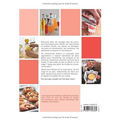 Plus de 150 pas à-pas et 700 photos gestes ! Retrouvez dans cet ouvrage tous les savoir-faire techniques pour réaliser vos charcuteries et produits fumés, vos yaourts et fromages, vos pains et viennoiseries, vos confitures, vos pâtisseries et desserts et vos boissons. De nombreuses photos en pas à-pas vous apprendront à réaliser facilement les bons gestes pour transformer vos produits et les conserver. Savez-vous entonner ou fumer de la viande ? Faire cailler du lait ou affiner un fromage ? Savez-vous pétrir de la pâte ou conserver du pain ?Découvrez l'histoire de la charcuterie, du fromage et du pain, sélectionnez les bons produits, équipez-vous avec le matériel adéquat... et régalez les papilles de vos invités. Cet ouvrage complet est fait pour vous !